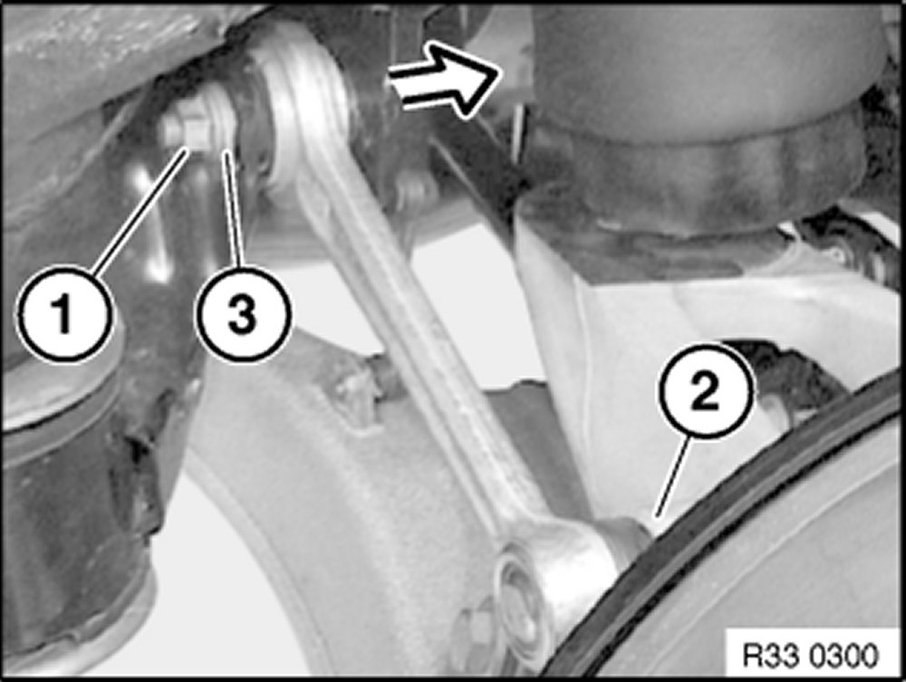 Note: If during removal operations the guide arm is detached from the rear axle carrier, it is necessary after reinstallation to carry out a wheel/chassis alignment check.