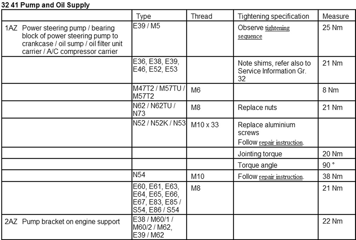 Torque Specs: