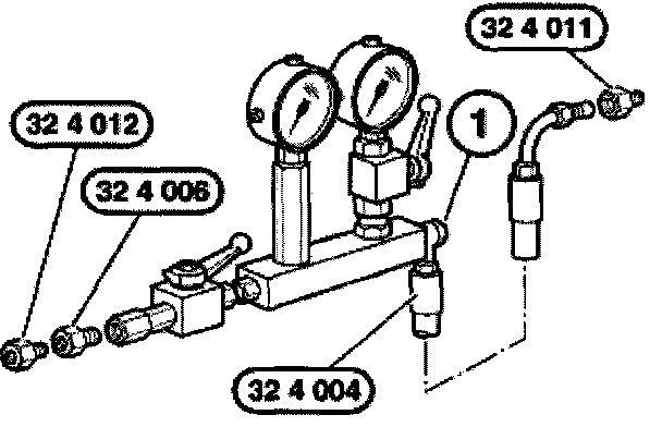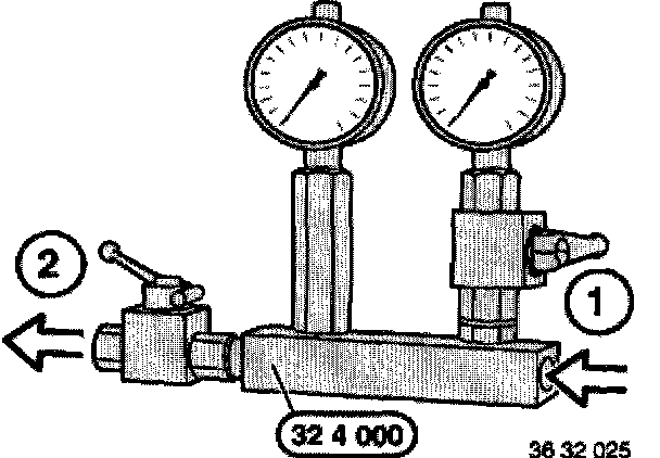 Screw special tools 32 4 006/32 4 005 onto special tool 32 4 000 and connect pressure hose.