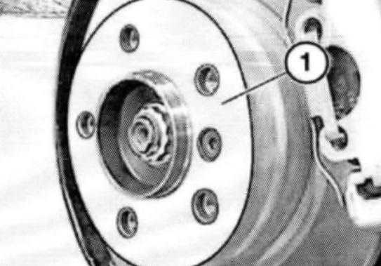 Remove all traces of dirt, grease and corrosion from contact surface (1) of brake disk.