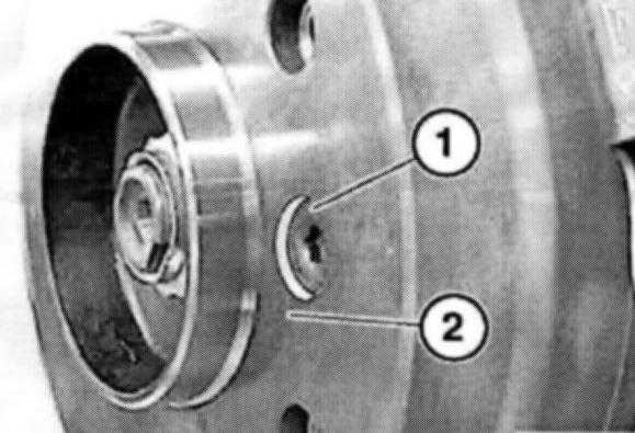 Retaining bolt must under no circumstances protrude over contact surface (2) between brake disk and disk wheel.