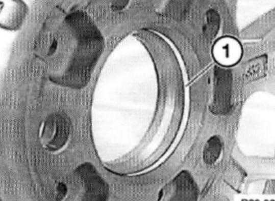 Remove all traces of dirt, grease and corrosion from contact surface (1) of disk wheel.