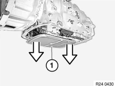 Pull off transmission fluid screen (1) towards bottom and remove.