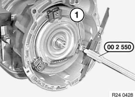 Pull radial shaft seal (1) out of converter housing with special tool 00 5 010.