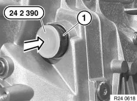 Insert special tool 24 2 390 in sealing sleeve (1).