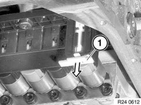 ^ Remove transmission cross-member (E60/61 only). Remove transmission sump.