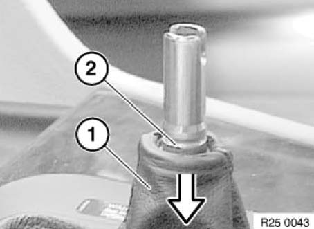 Push rubber gaiter (1) down and attach to selector lever (2).
