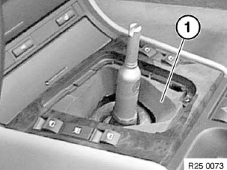 Pull rubber gaiter (1) over selector lever and insert in center console.