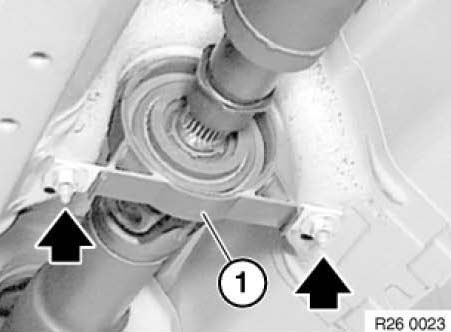 Detach propeller shaft from transmission output flange and tie back to side on vehicle underbody.