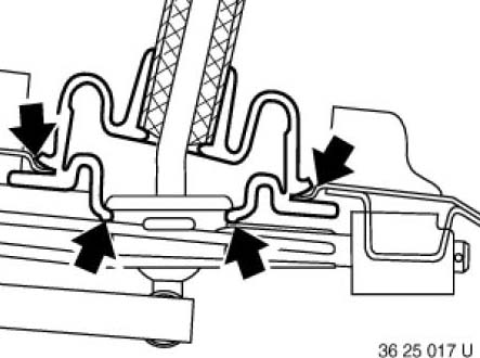 Press mounting in area of retaining lugs in selector arm until mounting snaps audibly into place.