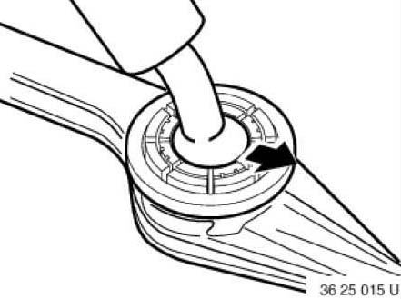 Push rubber gaiter (1) down until groove (2) is fully exposed.
