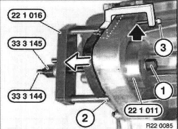 Position special tool 22 1 016 on opening (2) and twist in screw (3) hand-tight against housing.