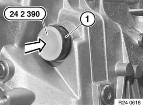 Insert special tool 24 2 390 in sealing sleeve (1).