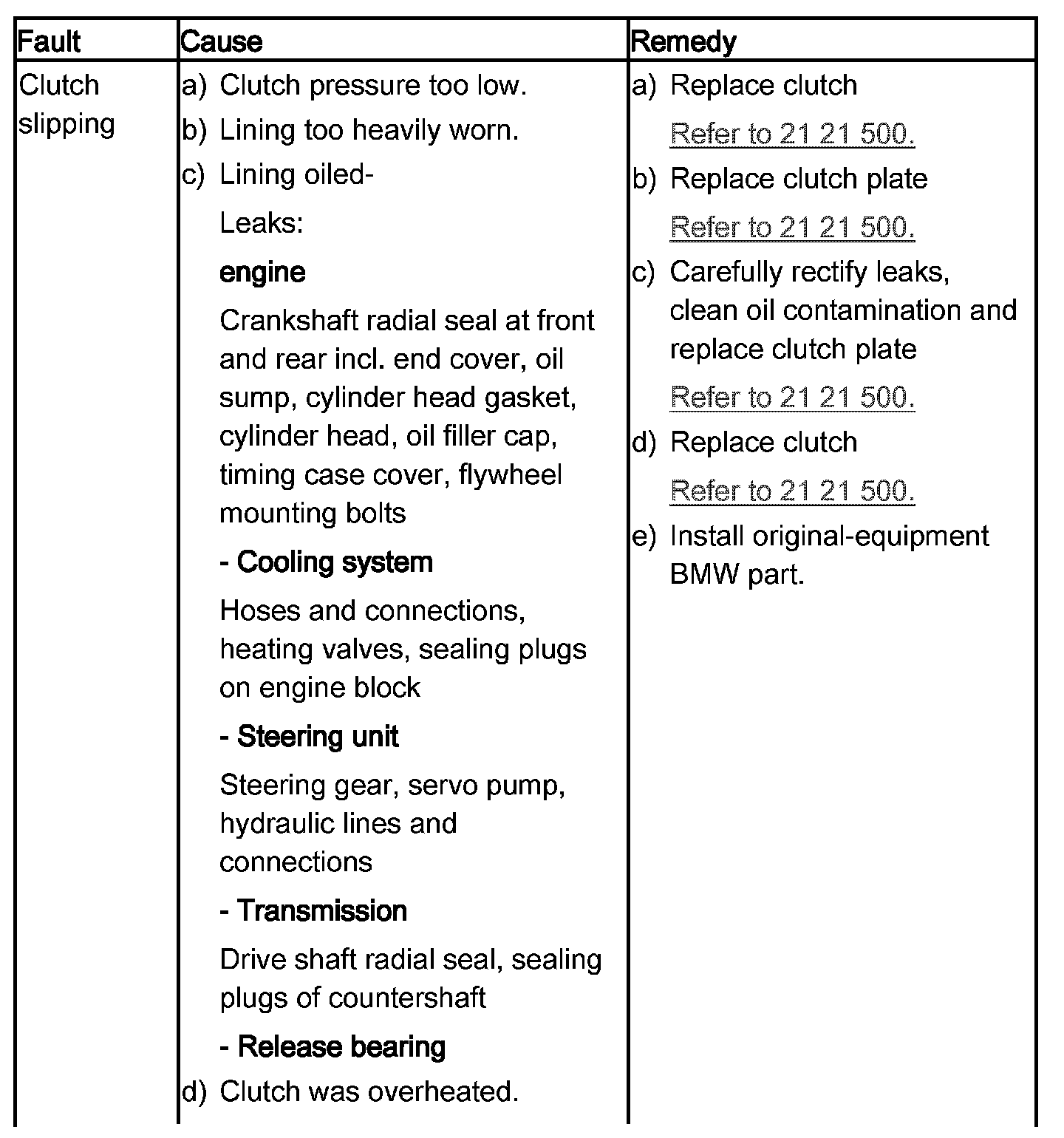 21 90 ... Troubleshooting the clutch