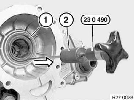 27 21 010 Replacing radial shaft seal for drive flange (NV125/ LWX-500 transmission)Special tools required: