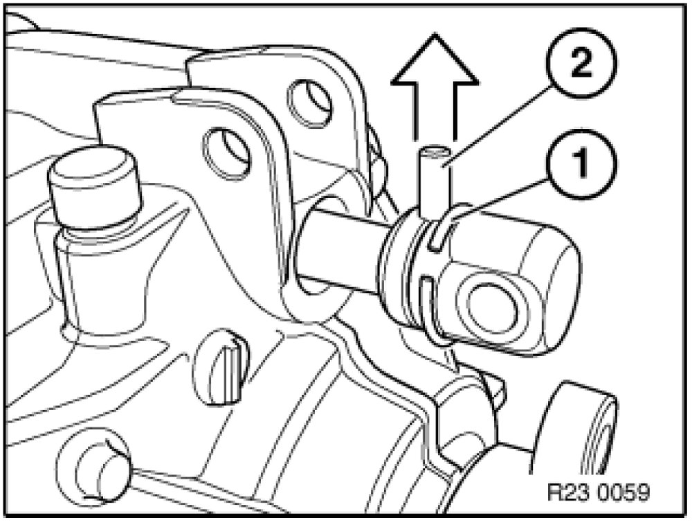 - Check rubber ring (1) in shift rod joint (2) and replace if necessary.