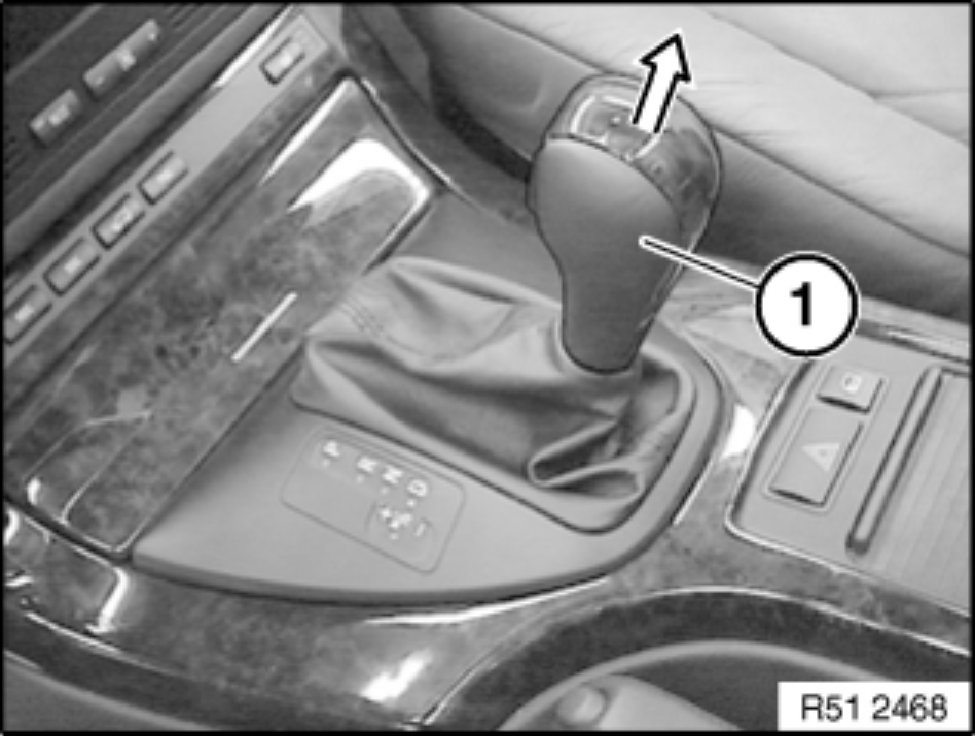 Apply hand-brake and move preselector knob (1) max. to rear (risk of damage to interior mirror).