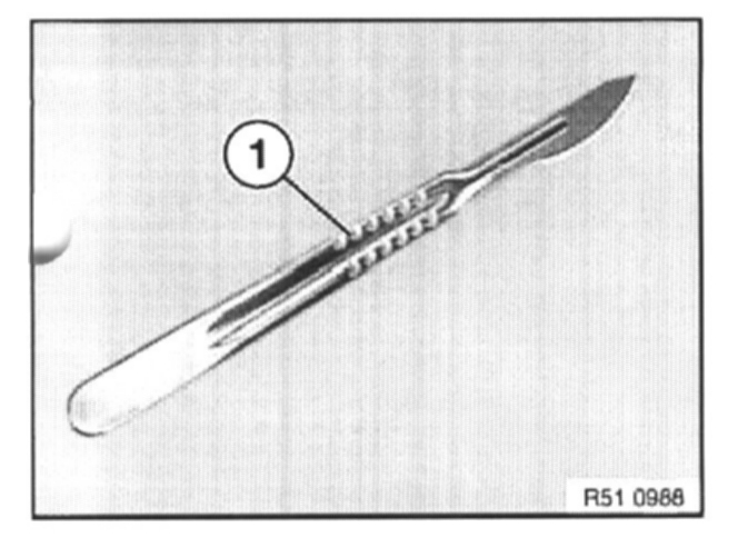 A scalpel (1) (for heavy-duty applications) is used for the area (D) of the C-pillar.