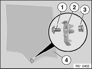 If necessary, fit new screw (1) and nut (3) on door window glass (4).