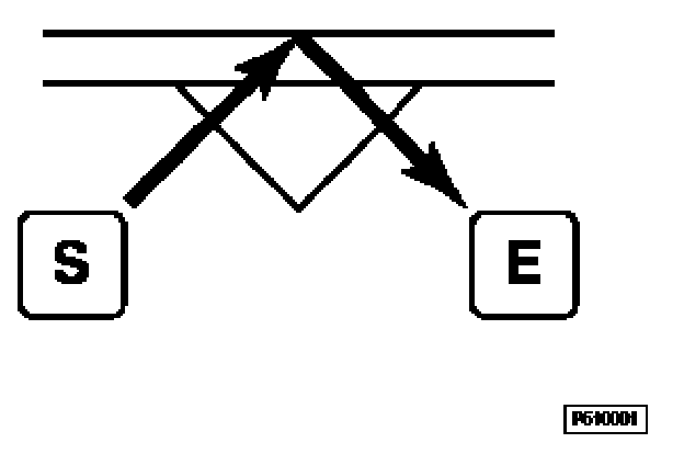When the windshield is dry, all infrared beams which are emitted by the infrared diodes "S" and which hit the windshield at a defined angle are reflected in full by the windshield and therefore reach the infrared receivers "E" also in full.