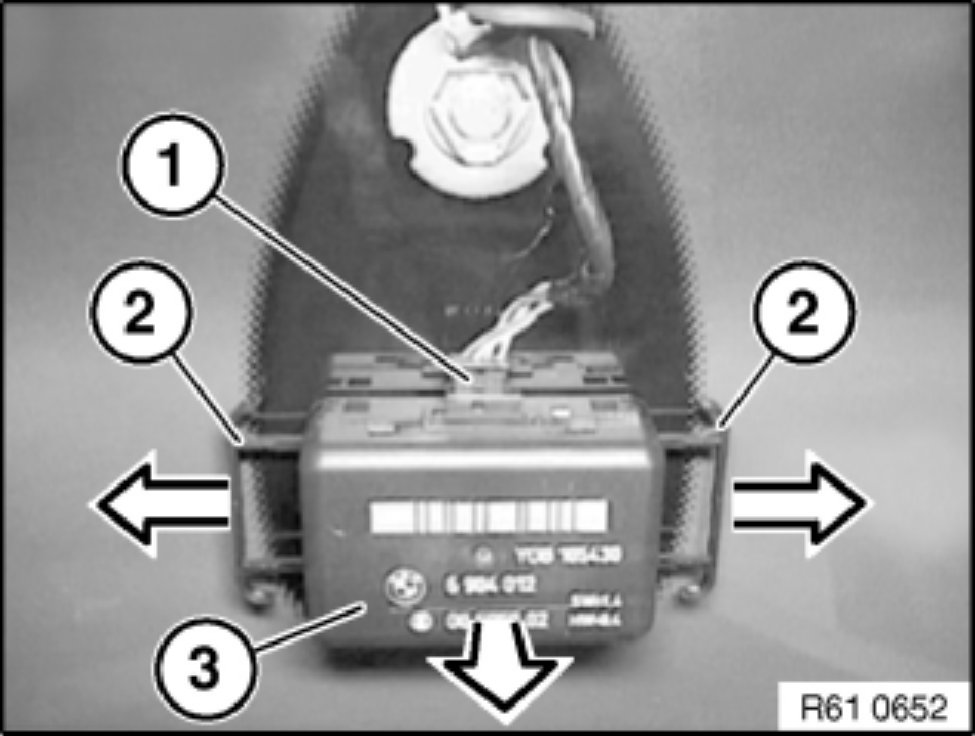 Press locks (1) in direction of arrow and remove rain/light sensor (2) towards bottom.