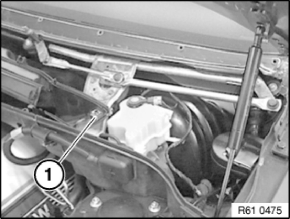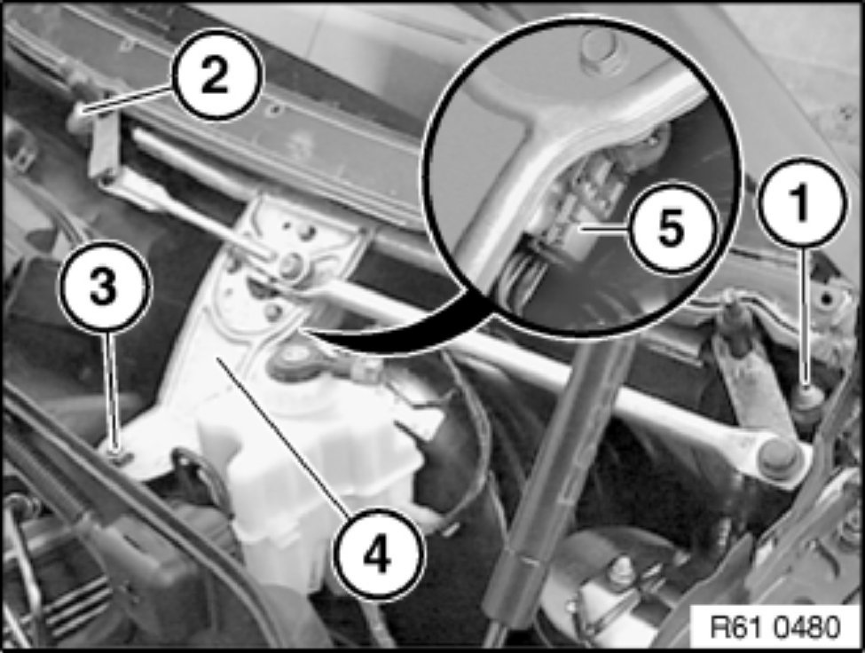 Remove bracket for windshield wiper system (4) and disconnect plug connection (5).