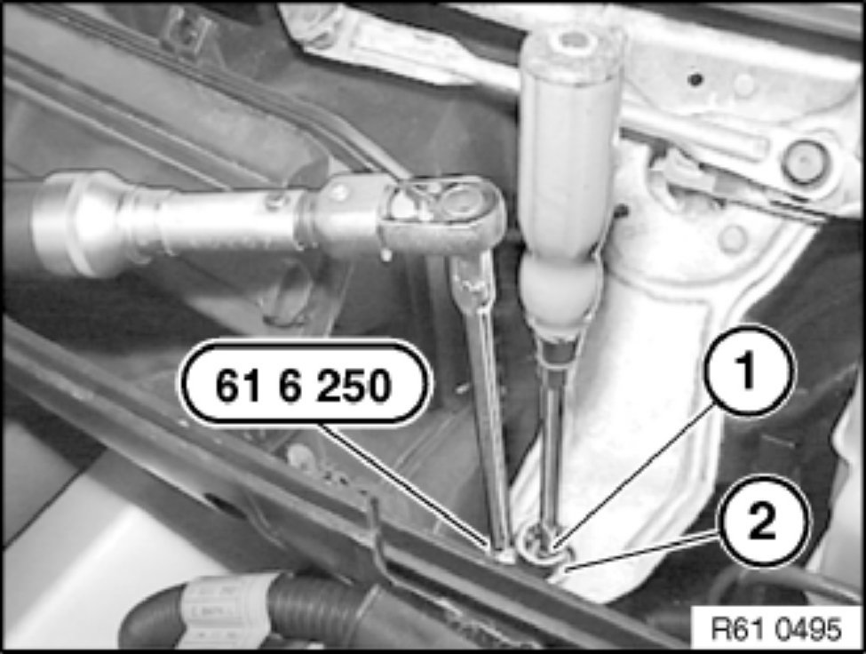 Grip adjusting screw (1) and tighten nut (2) with special tool 61 6 250.