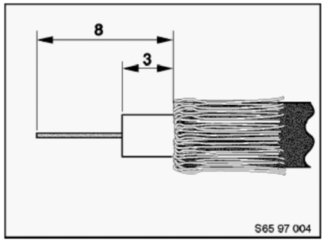 IMPORTANT: There must be no more copper wire protruding in the direction of the inner conductor on the inner conductor insulation (risk of short circuits).