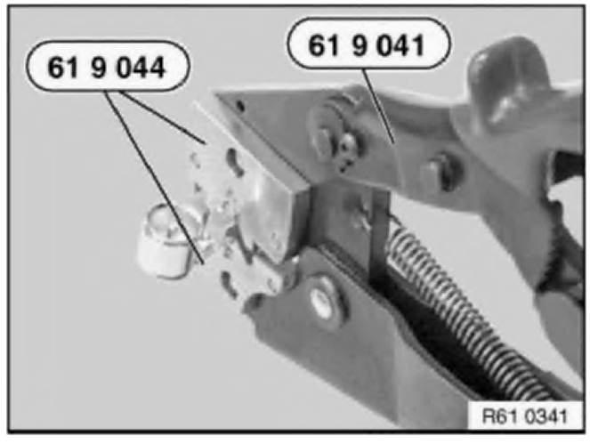 Special tool 61 9 041 (hand pliers) in conjunction with special tool 61 9 044 (matrix) is used to crimp antenna angle plug.