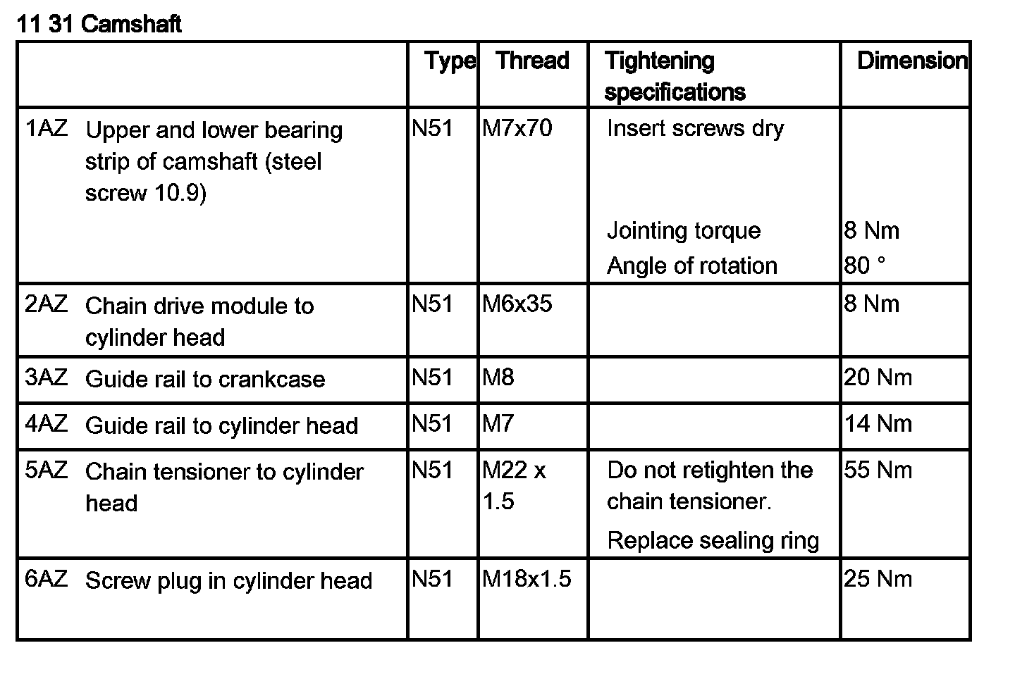 11 31 028 Removing and installing/replacing exhaust camshaft (N52K)Special tools required: