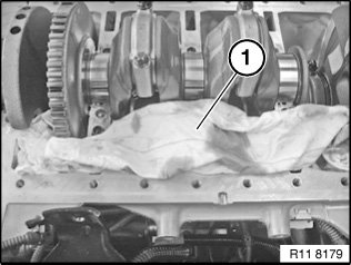 Position radial shaft seal (1) with special tool 11 8 220 on the crankshaft.