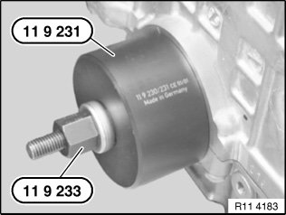 Screw special tool 11 9 235 with special tool 11 9 234 on crankshaft.