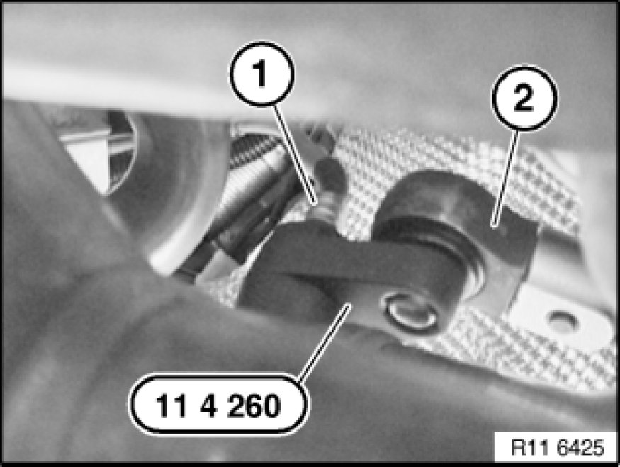 Release lambda control sensor (1) on exhaust manifold of cylinder nos. 4 to 6 with special tool 11 4 260.