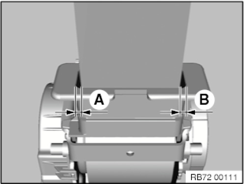 Free spaces of (A) and (B) from the seat belt strap to the guide funnel must be of the same size.