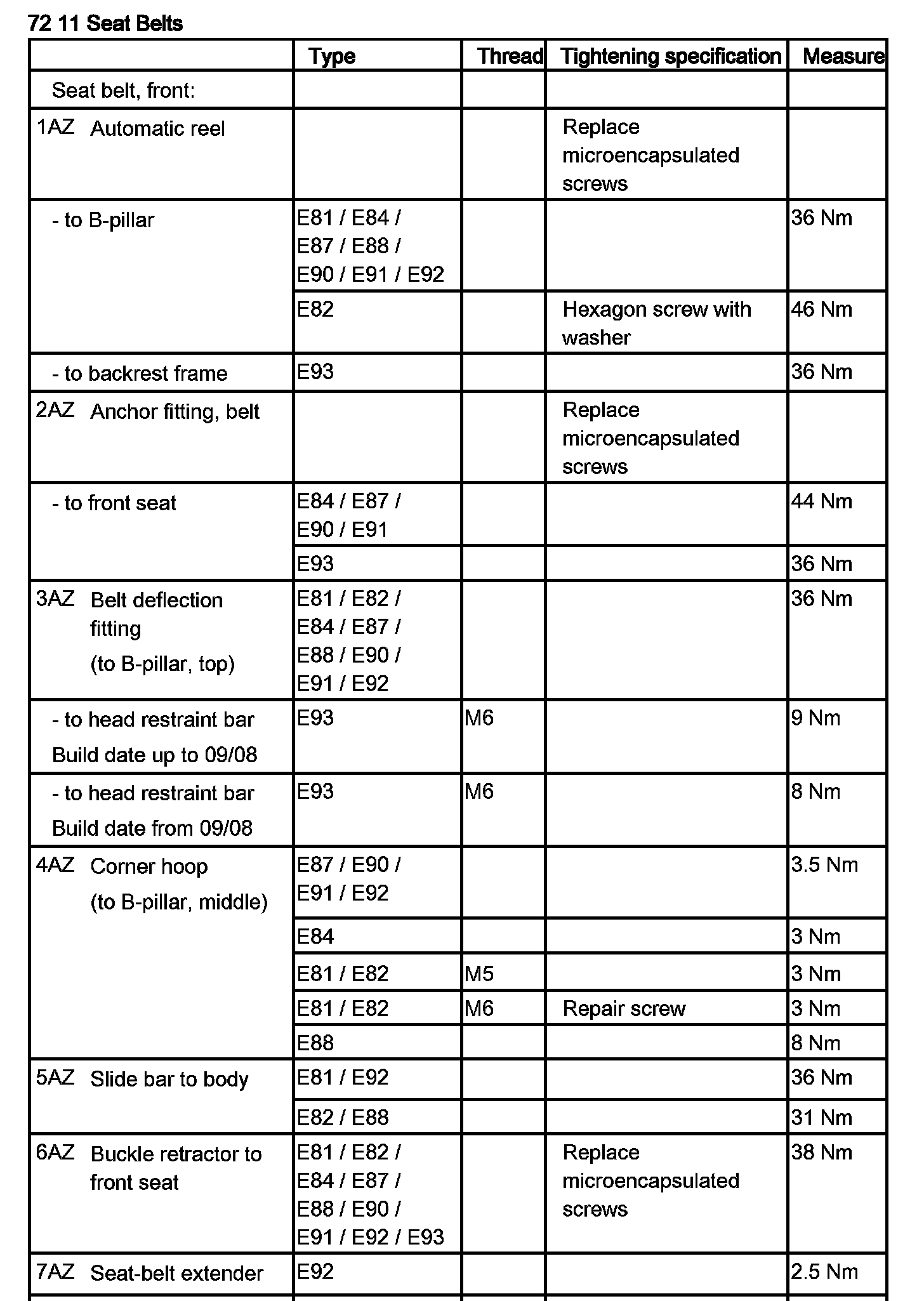 72 11 033 Removing And Installing/Replacing Front Left or Right Seat Belt