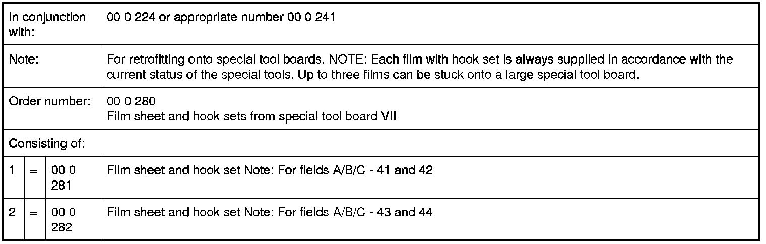 00 0 280 Film sheet and hook sets from special tool board VII