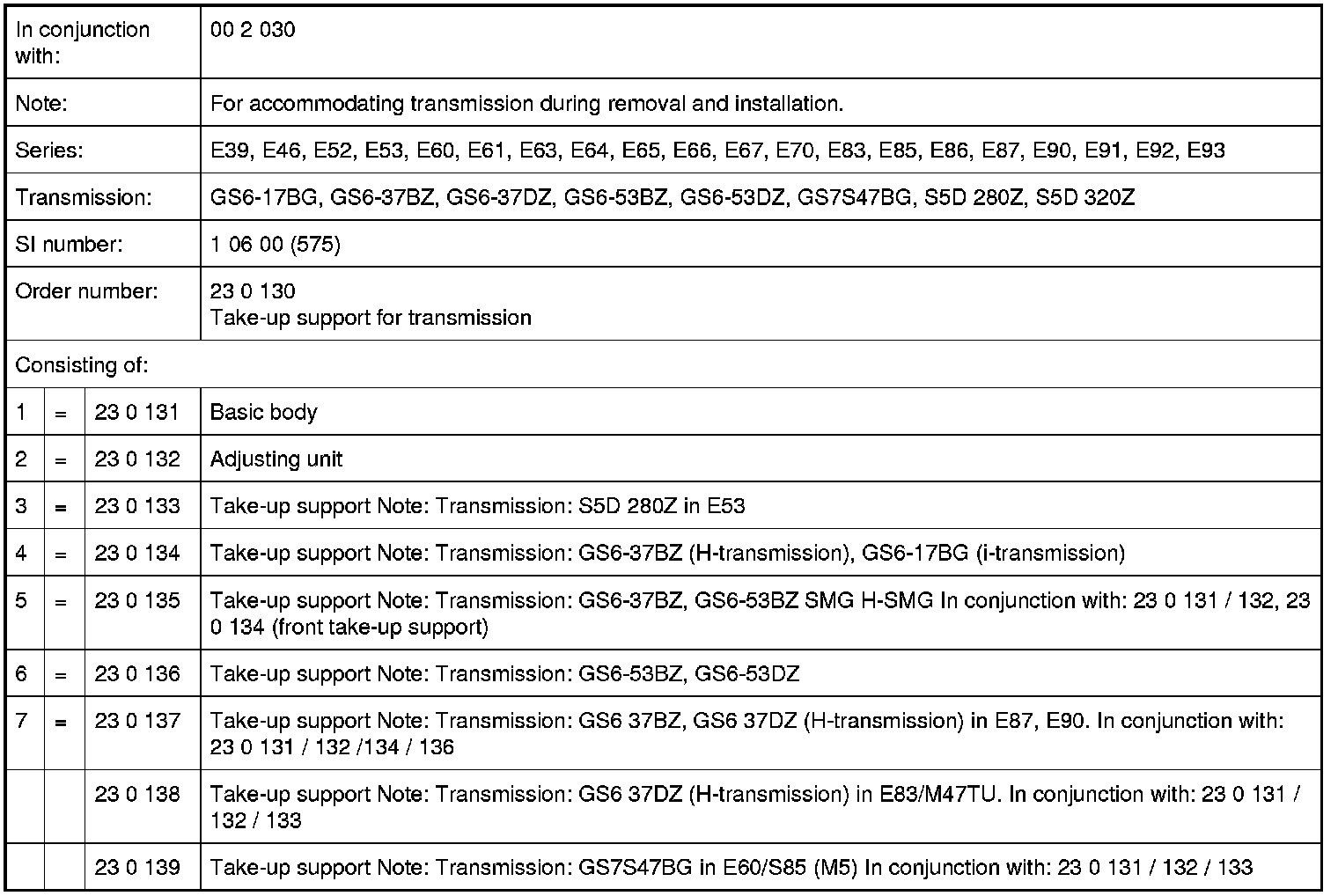 23 0 130 Take-Up Support for Transmission