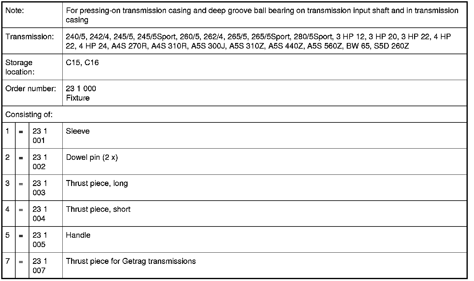23 1 000 Fixture