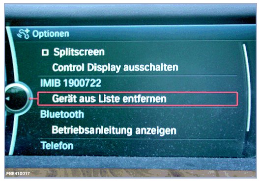 The IMIB must still be deleted as a connected Bluetooth device from the vehicle list after the Bluetooth check. Otherwise an extra Bluetooth device will be stored in the vehicle memory unnecessarily. Refer to the vehicle operating instructions for this function.