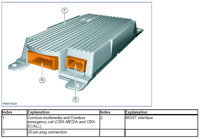If CBX-MEDIA and CBX-ECALL are fitted, the Combox has telematics capability (emergency call).
