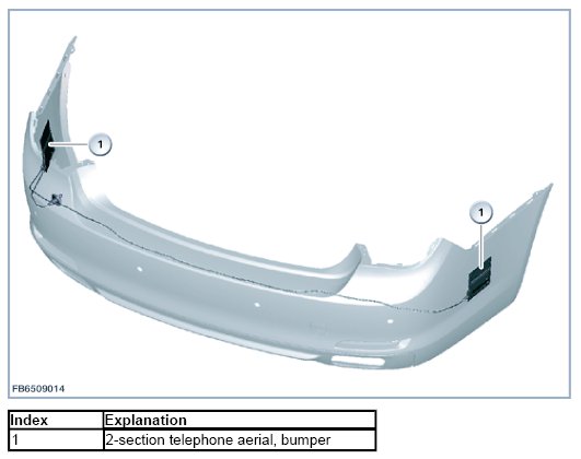 The bumper telephone aerial is the transceiver aerial for the rear compartment telephone. The bumper telephone aerial is fitted depending on the selected optional equipment.