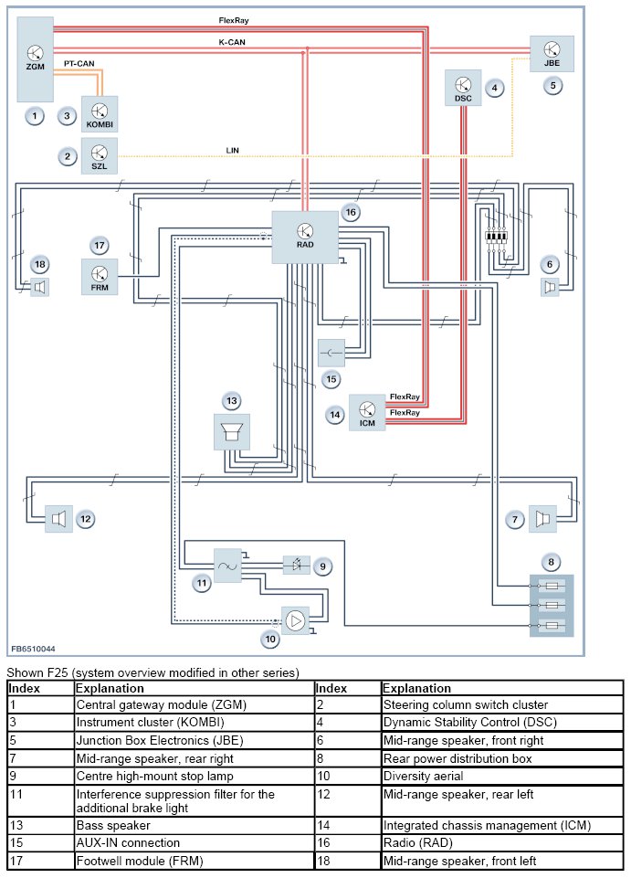 This radio is not equipped with a MOST interface. The radio has a 2-row display on its front. An external Central Information Display (CID) and a controller (CON) are not installed on this headunit. Operation is only by means of the integrated buttons and the 2 rotary push-buttons.