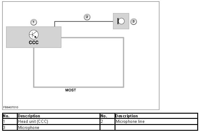 Depending on the vehicle equipment, the vehicle equipment is connected to different control units. The microphone signals are then transferred across the MOST bus to the other control units.