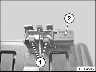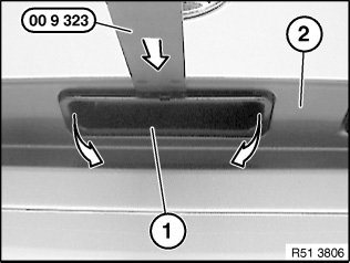 Slide special tool 00 9 323 under the front edge of button (1) and lift button (1) out.