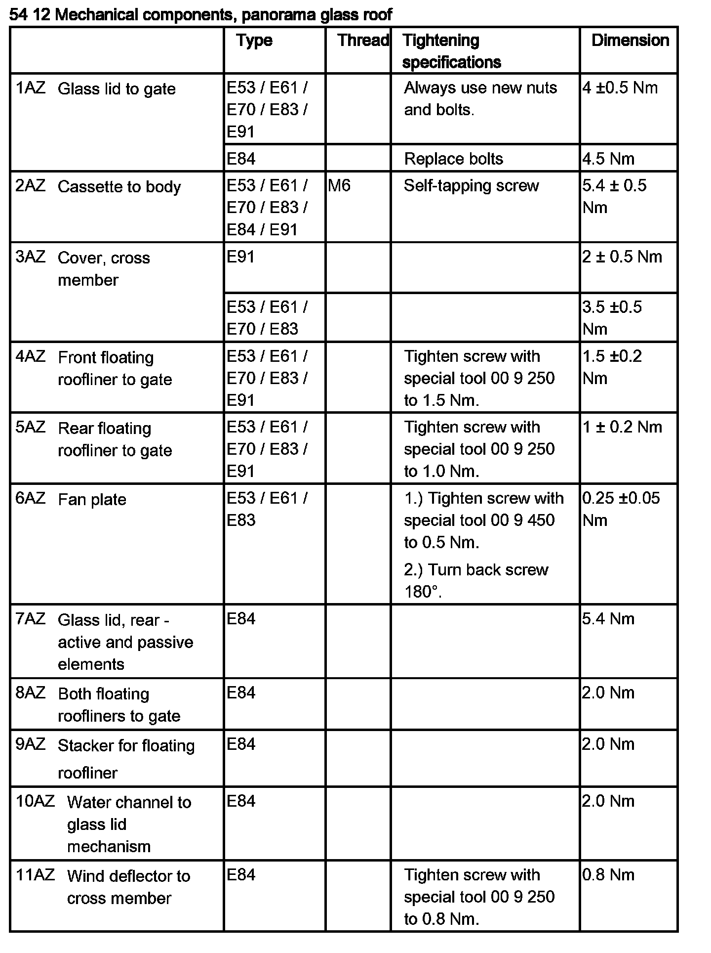 - Tightening torque 54 12 01AZ.