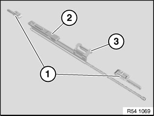 - Drive cable plate (2) and locking lever for floating roofliner (3) must execute a joint movement.