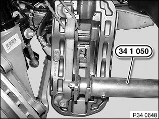 34 11 000 Removing and installing/renewing brake pads on both front disc brakes (Brembo)Special tools required: