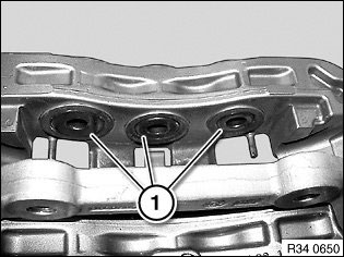 - Position special tool 34 1 280 at three measuring points in area (1) and measure.