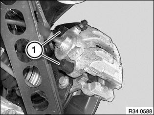 So as not to damage the surface coating, if possible do not mechanically clean the guide surfaces (1) for the brake pads on the brake caliper mounting bracket.
