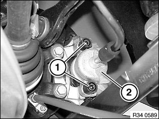 So as not to damage the surface coating, if possible do not mechanically clean the guide surfaces for the brake pads on the brake caliper mounting bracket. Instead, clean with brake cleaner BMW part no. 83 19 2 154 780 and apply a thin coating of brake pad paste BMW part no. 83 19 2 158 851.